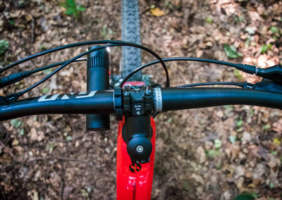 Co mě mile překvapilo byl držák na řídítka kola. Velmi minimalistický a do detailu propracovaný. Není potřeba ani šroubováku, protože držák je vybaven rychloupínacím šroubem. Tvar držáku lze využít dvěma směry, mít světlo nad řídítky, nebo pod řídítky. Mě oslovila varianta mít světlo pod řídítky a nalepené ihned u představce kola. Docílil jsem toho, že mi světelný kužel pěkně svítil na střed, zároveň světlo nebylo na první pohled vůbec viditelné a nezabíralo mi moc místa na řídítkách. Uchycení světla bylo velmi stabilní, i ve větším terénu a zkouškách světlo z držáku rukou vyrvat, mi světlo drželo jako přibité. V nabídce existuje podobný držák i na cyklistickou helmu.